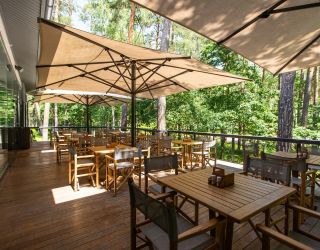 В ресторане гостям предлагают блюда итальянской, авторской и белоруской кухни,есть банкетный зал, где можно провести банкет, фуршет, кофе-брейк, кейтеринг.