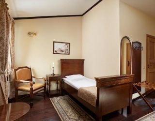 Гостиница разместилась в исторических зданиях — памятниках архитектуры XVIII века. Трехэтажный и одноэтажный корпуса связаны между собой теплым переходом. Жилой фонд, рассчитанный на 80 отдыхающих, предлагает гостям одноместные и двухместные номера разной категории комфорта. В комнатах интересный интерьер, стилизованный под старину, есть санузел с ванной или душевой кабиной и необходимая техника: телевизор, кондиционер, фен, холодильник.